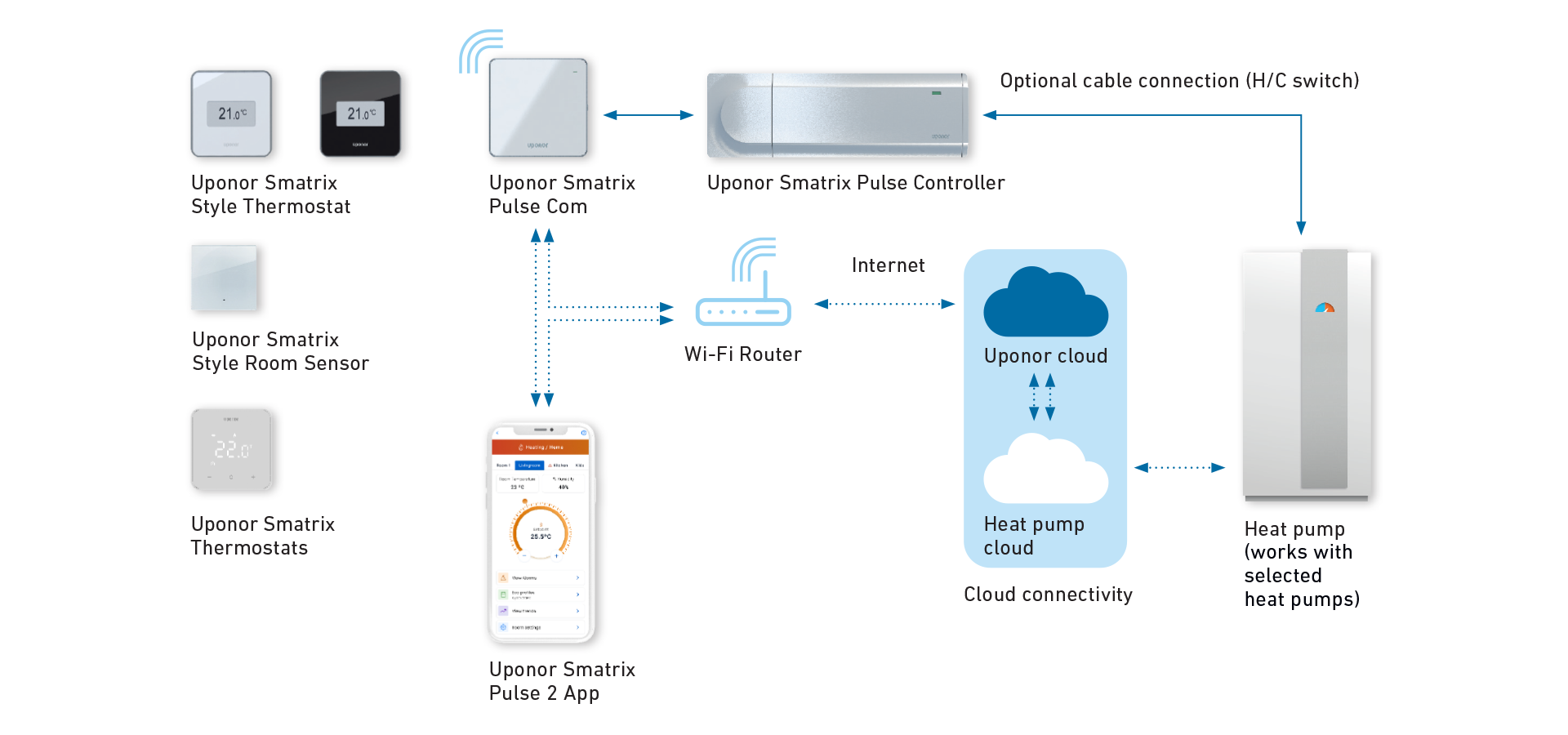 Uponor Smatrix AI revolutionizes underfloor heating control by integrating Artificial Intelligence to predict, adapt, and optimize heating performance. Seamlessly connected to heat pump via cloud-to-cloud integration, it ensures fast response times, effortless setup, and maximum energy efficiency. By analyzing weather patterns, room temperature factors, and user preferences, Smatrix AI continuously adjusts heating output, keeping indoor temperatures.