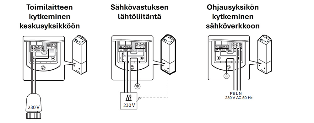 - Vaihtoehto 2: jokaiselle keskusyksikölle erikseen yhteisen kytkentärasian kautta (rinnan kytkentä)
