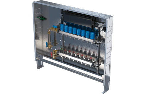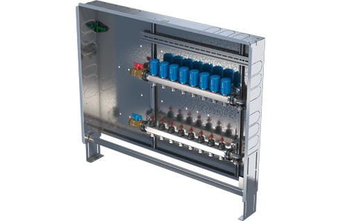 Naši ormarići za razdjelnike sastavljeni su u skladu sa zahtjevima klijenta i isporučuju se spremni za priključivanje na gradilištu. Montažom u tvornici, koja uključuje i ožičenje aktuatora s osnovnim modulom, ne samo da se skraćuje vrijeme potrebno za instalaciju, već se i od samog početka izbjegavaju pogreške pri instalaciji. Sami se uvjerite u prednosti upotrebe montiranih ormarića za razdjelnike:
