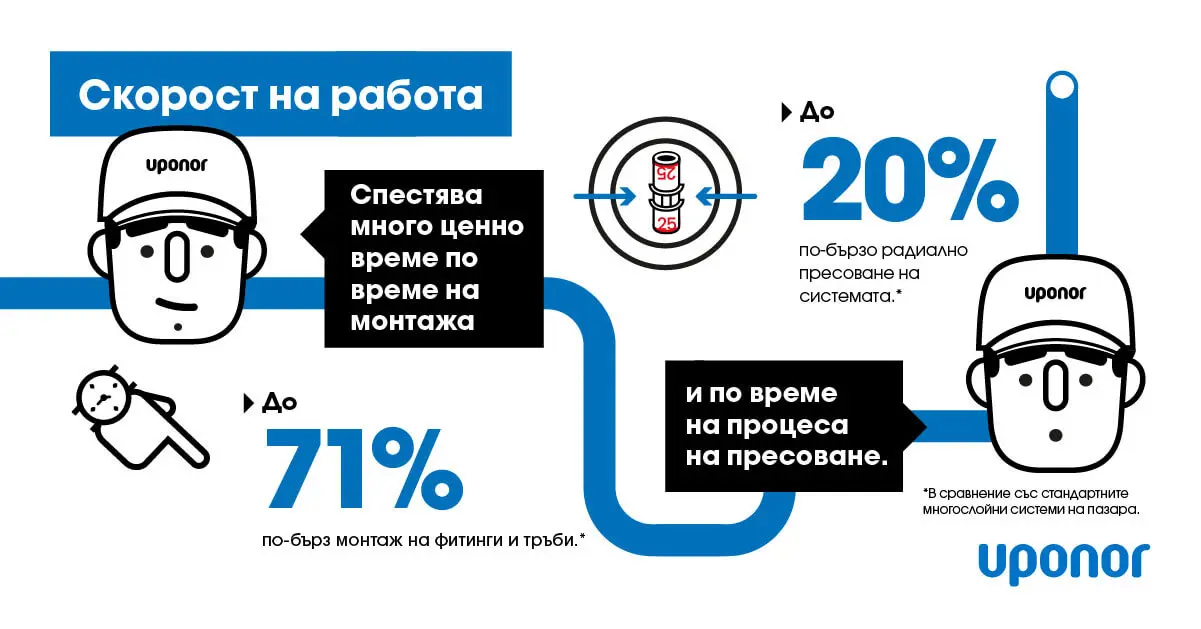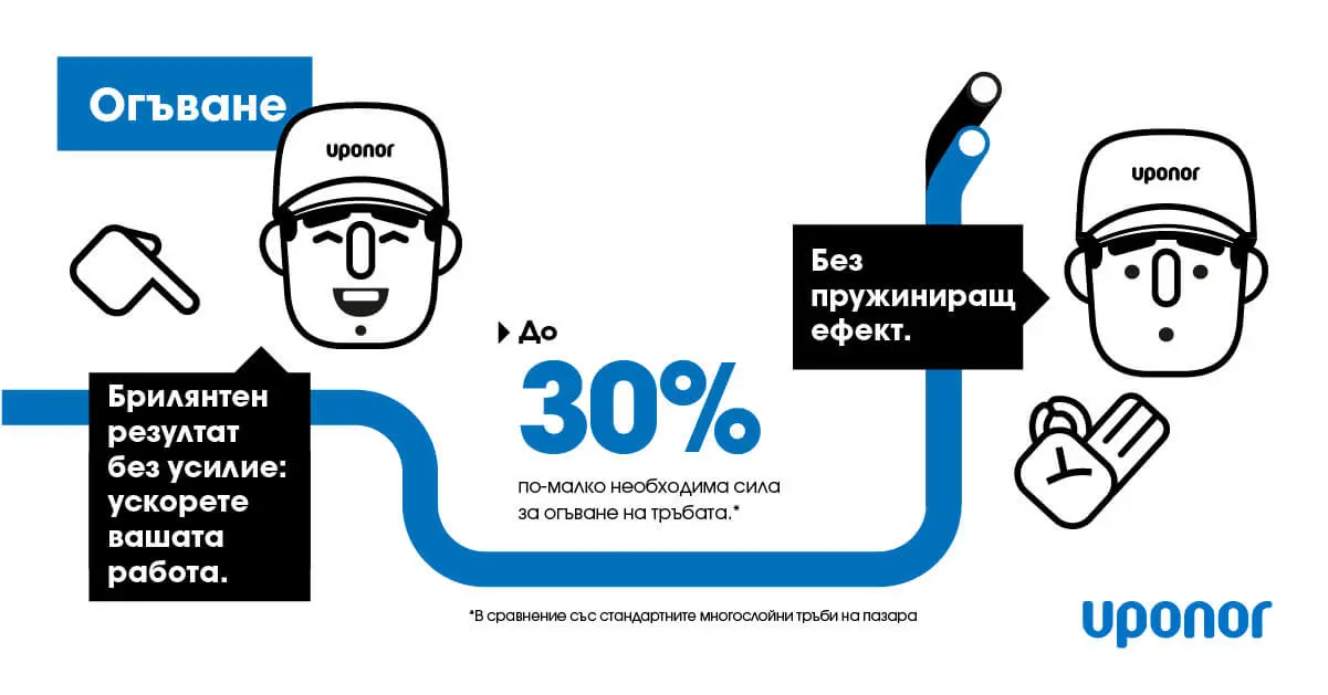 Тази многослойна тръба за питейна вода (Uponor MLCP) заедно с S-Press PLUS прес-фитинги поддържа вашия строителен проект с бързи и ефективни монтажи.