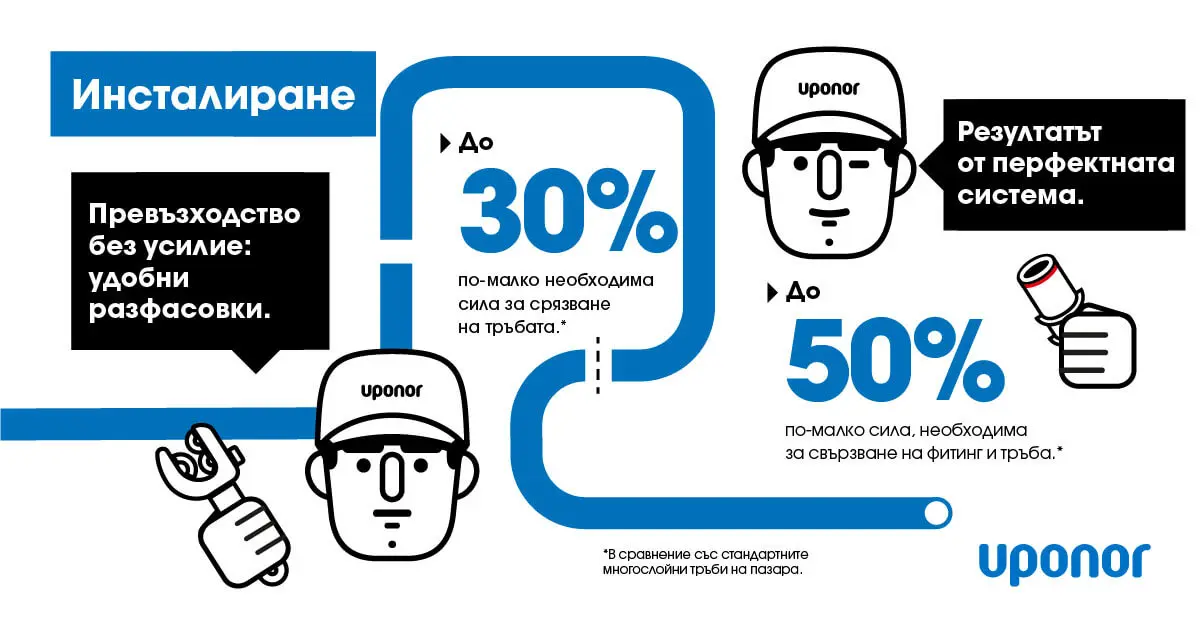 Предимства по време на инсталацията с нашата многослойна тръбна система Uni Pipe