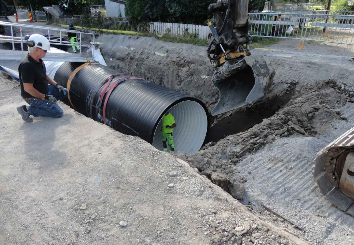 The pipe that will be used in Sollentuna is a Weholite pipe in dimension 2200 SN8. The material is flexible and can be easily machined without the wires being affected internally. In comparison with a normal traditional concrete pontoon, the culvert itself also functions as a building structure. Servicing lines or carrying out repairs is not only faster and easier, but also increases operational reliability.