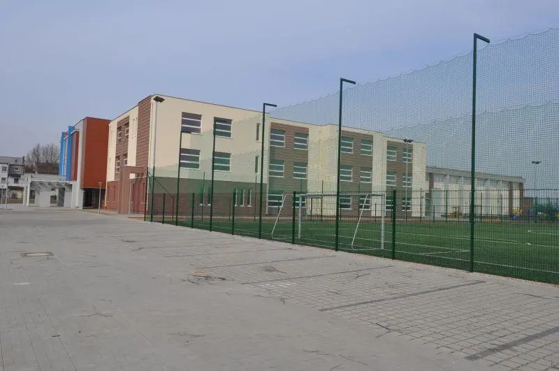 This is the first school built from scratch after 1989 in Poznan. The construction of this modern educational center started in 2009 and was completed in 2011 by contractor PTB Nickel. Up to 800 students can attend these schools. The project was made up of two parts, the educational and sports. In this block of buildings there were applied innovative architectural and technological solutions, which will be followed in the list of objects of the XXI century. Primary and secondary school in Poznan contains 41 classrooms, specialist rooms including: chemical, art classes, music, computer and audio-visual room. Part of the investment is sports: sports hall with seats for 400 spectators, gym, corrective gymnastics hall, playing fields for football, basketball and volleyball, sports track with a length of 60 m, the hill in the distance and a playground for the youngest.