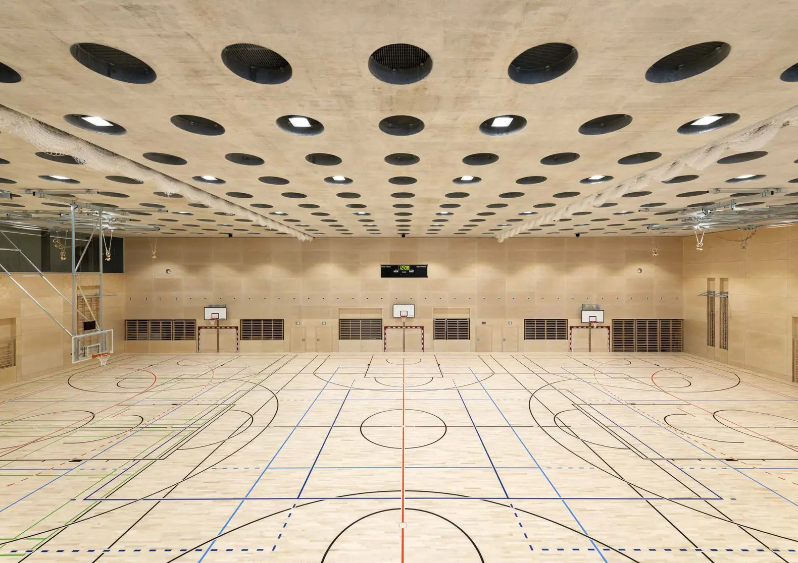 The Tyrolean town Kundl has inaugurated its new primary school, including a large sports hall. Surface heating and cooling systems from Uponor, including a special sports floor system, ensure pleasant temperatures for learning and sports.