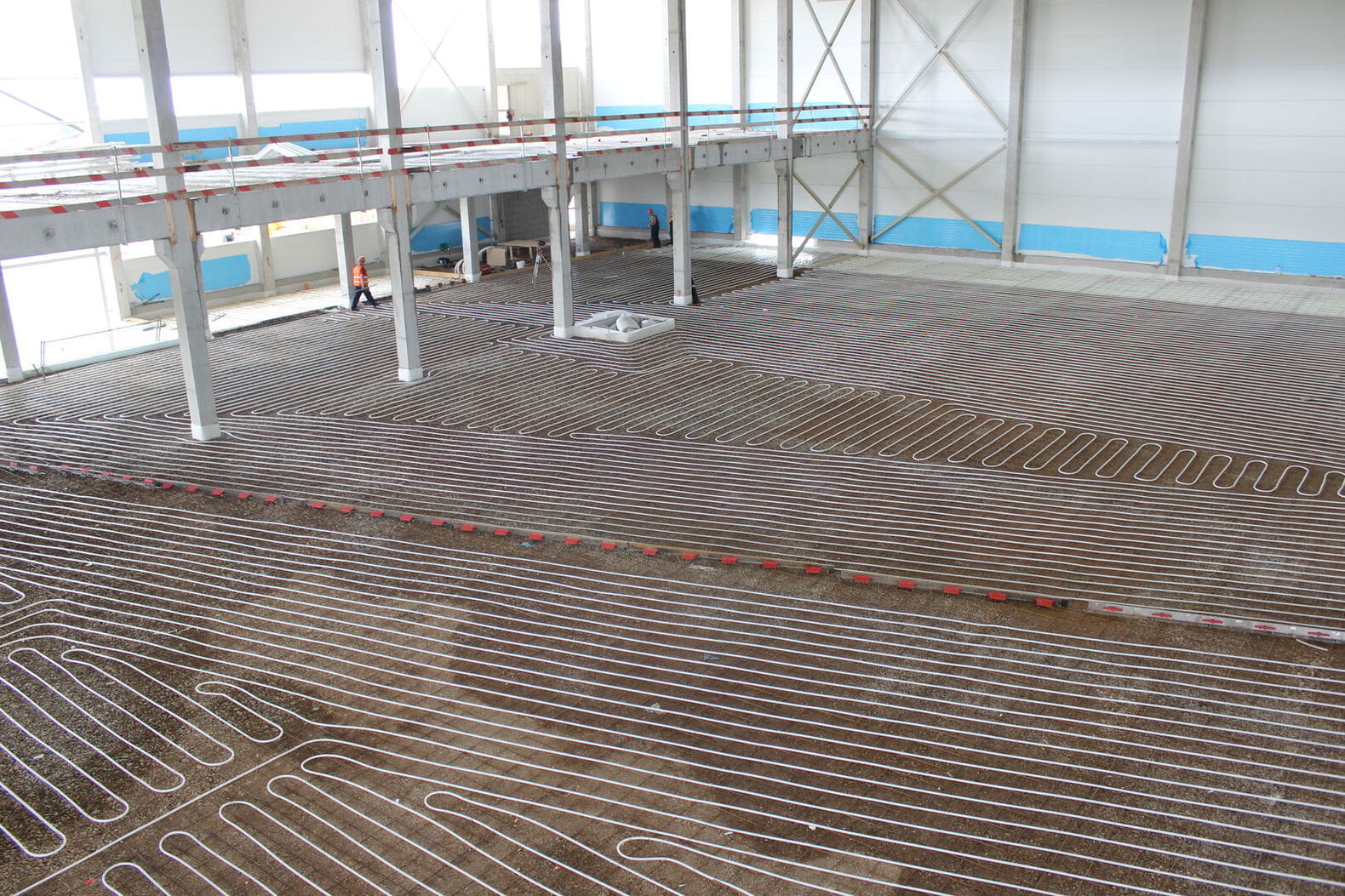 The object has about 5,000 m2 of heated surface in total, with approx. 18 km of pipes and 23 Q&E modular collectors fitted under the floor. These collectors stand out from other similar products due toconnectors that are free of rubber sealants and sturdier than a pipe, and due to theheat-transfer medium which is fed via pre-insulated Uponor Thermo Twin pipe systems.