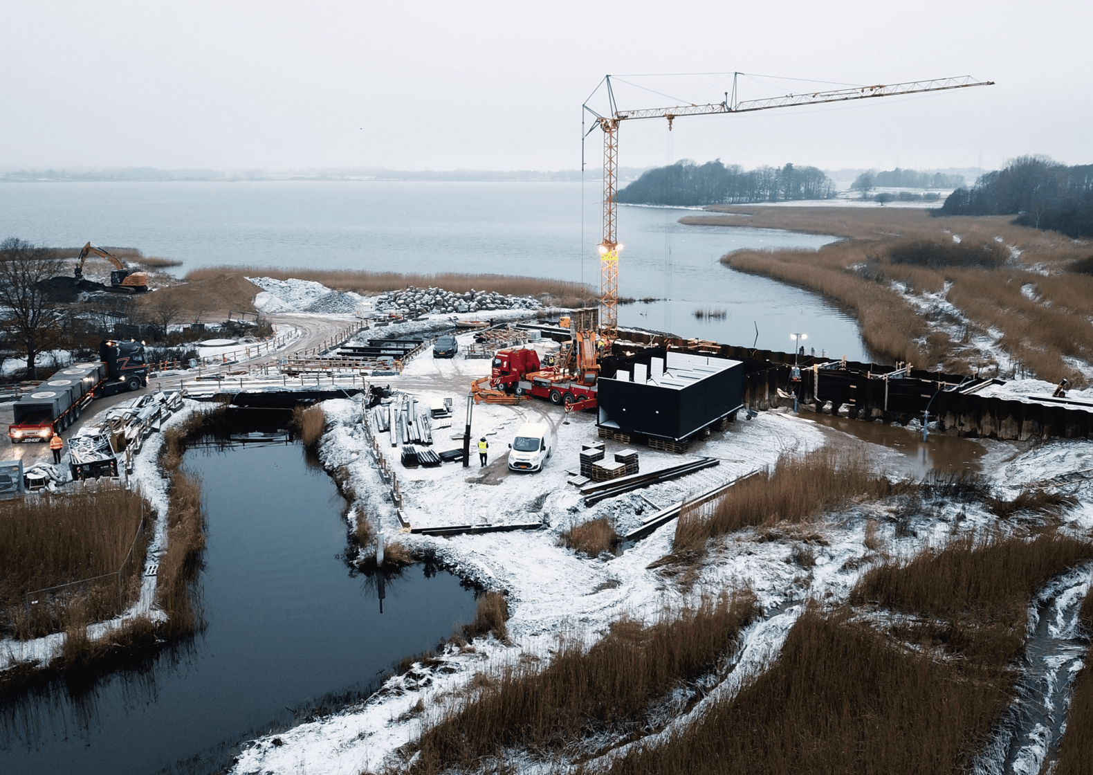 Opførslen af det store kystsikringsanlæg er ved at gå ind i sin sidste fase, hvor pumpespecialisterne fra Sulzer lægger sidste hånd på et helt nyt pumpeanlæg, der skal sende overflodsvand fra Værebro Å tilbage i fjorden, når åen går over sine breder. Sulzers pumper installeres i det specialfremstillede Wehopanel bygværk af polyethylen, PE-plast, fra Uponor Infra. Der er en bestemt grund til at valget faldt på et Wehopanel: