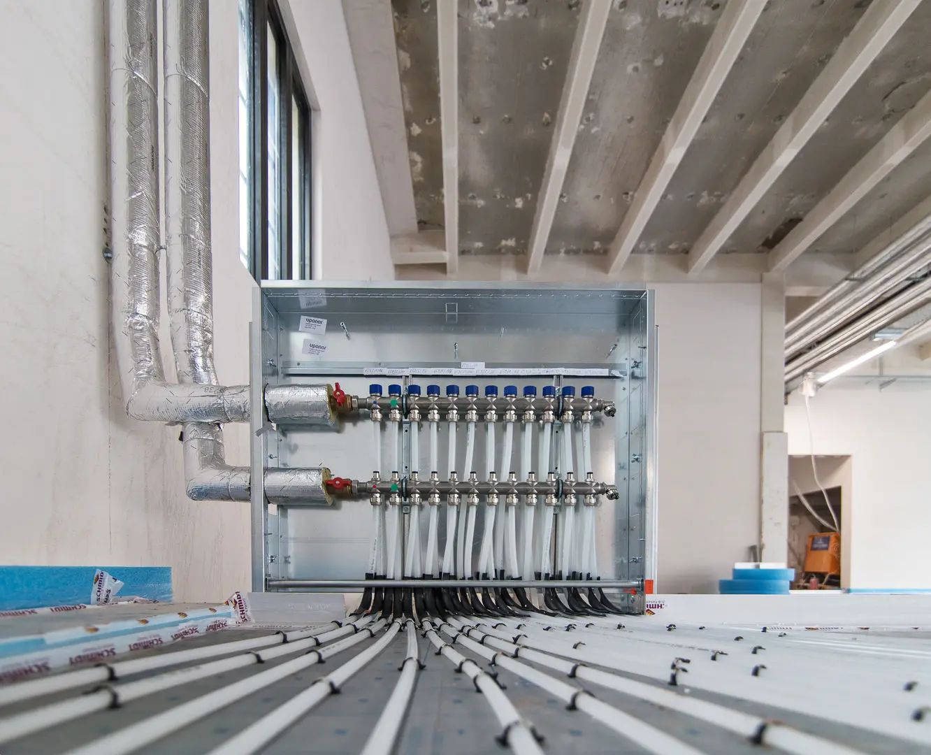 Uponor pipes laid by Hofmann & Ollinger, Mettlach-Wehingen, for underfloor heating and cooling ensure a comfortable temperature throughout the 4,000 square meter area. The drinking water installation, including the distribution and riser pipes, was also brought up to the latest state of the art with Uponor pipes in sizes 16-75.