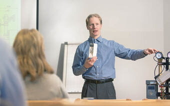 Vi tilbyder højt kvalificeret undervisning, hvor vi udvider fokus fra de enkelte produkter til systemløsninger og forskellige brancheregler. Vi kan også tilbyde skræddersyede kurser, der opfylder dine specifikke behov.