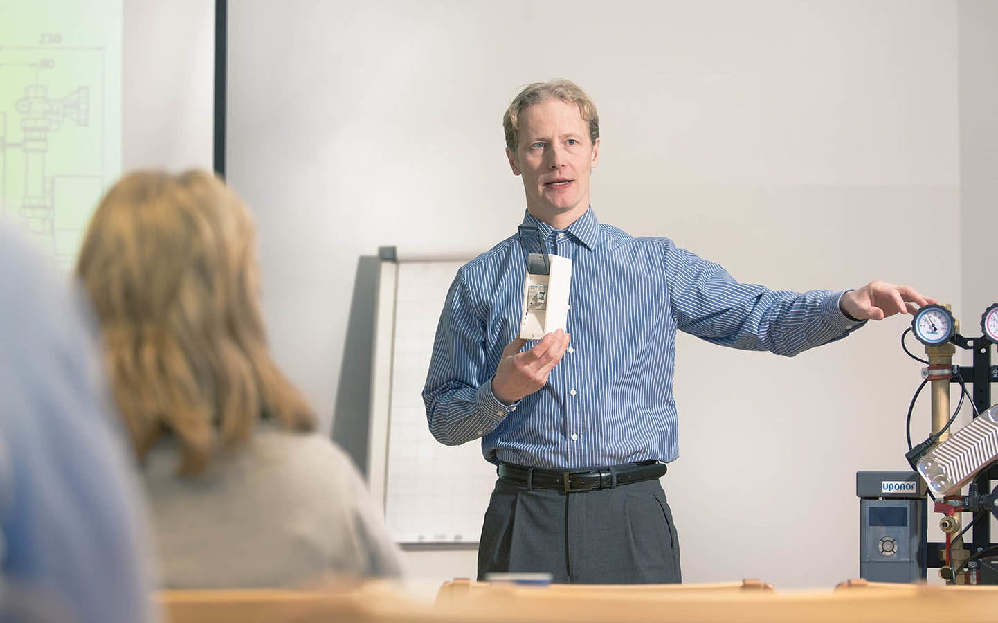 Uponor Academy er for dem, der ønsker mere viden på ét eller flere af de områder, hvor Uponor opererer. Vores undervisning fokuserer på viden om systemerne inden for infrastruktur samt krav fra myndigheder og generelle regler inden for branchen. Uponor Academy tilbyder uddannelsespakker inden for VA- og VVS-branchen. Kurserne er tilpasset en række forskellige fagområder, erfaringsniveauer og interesseområder. Formålet med vores uddannelsesforløb er at skabe målrettede kurser, som fokuserer på præcis de fagområder, hvor du måtte have behov for mere viden. Kurserne er derfor tilrettelagt i henholdsvis fastlagte moduler og kundetilpassede moduler, således at du kan få det kursusforløb, som passer netop til dine behov.