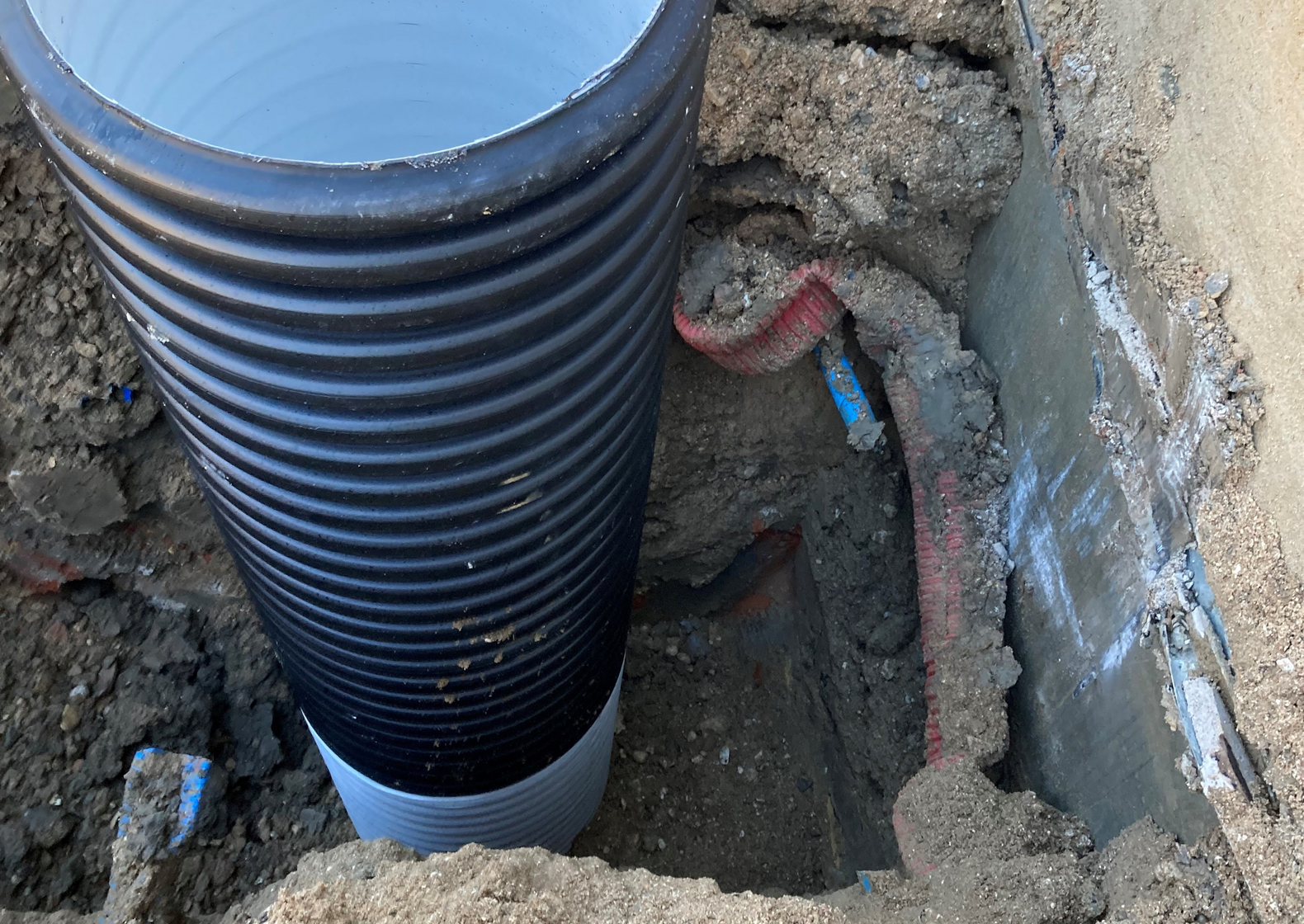 Oprindeligt var byggeriet designet med standardiserede regnvandssystemer, der skulle håndtere det forventede regnafstrømning fra både tage og veje. Dog afslørede områdets særlige beliggenhed og terræn, at vandet samlede sig i langt større mængder end først antaget. For at imødekomme risikoen for oversvømmelse og beskytte de kommende beboere mod fremtidens stadigt mere ekstreme vejrfænomener, besluttede bygherren at implementere en ekstraordinær drænløsning.