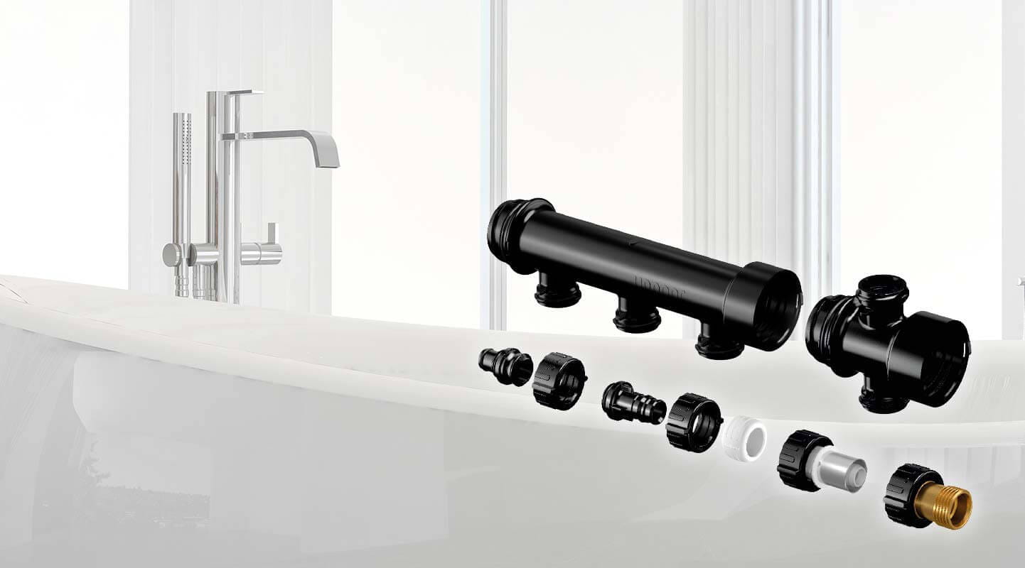 Det fleksible Uponor PEX-rørsystem er hurtigt og nemt at tilslutte PPSU-gevindfittings af plast eller metal, det er den perfekte løsning til brugsvands- og varmeinstallationer.