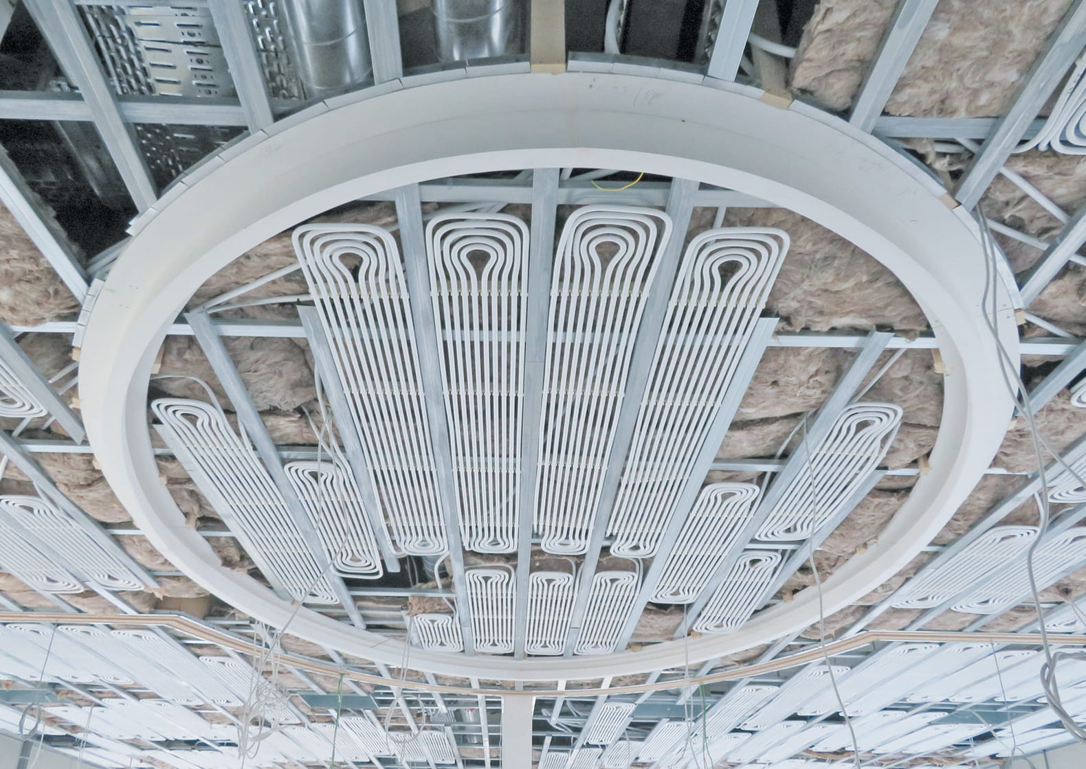 A radiant cooling ceiling from Uponor ensures pleasant temperatures all year round.