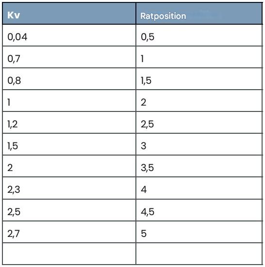 ved den indstillede værdi (1–8) på ventilen er vist nedenfor.