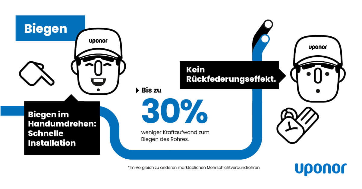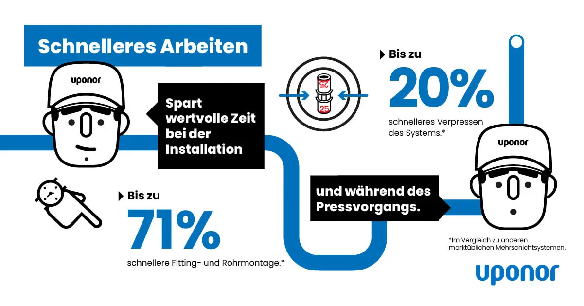 Das weltweit erste Mehrschichtverbundrohr ohne Schweißnacht unterstützt zusammen mit den Uponor S-Press PLUS Pressfittings Ihr Bauvorhaben durch eine schnelle und effiziente Installation.