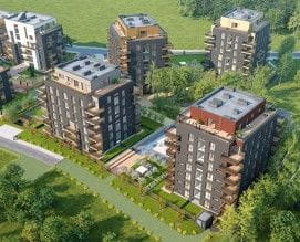 "Beržų Terasos" (Birch Terraces) - nature surrounded 10,600 m2 sized multi storey apartment buildings in Vilnius Antakalnis district.