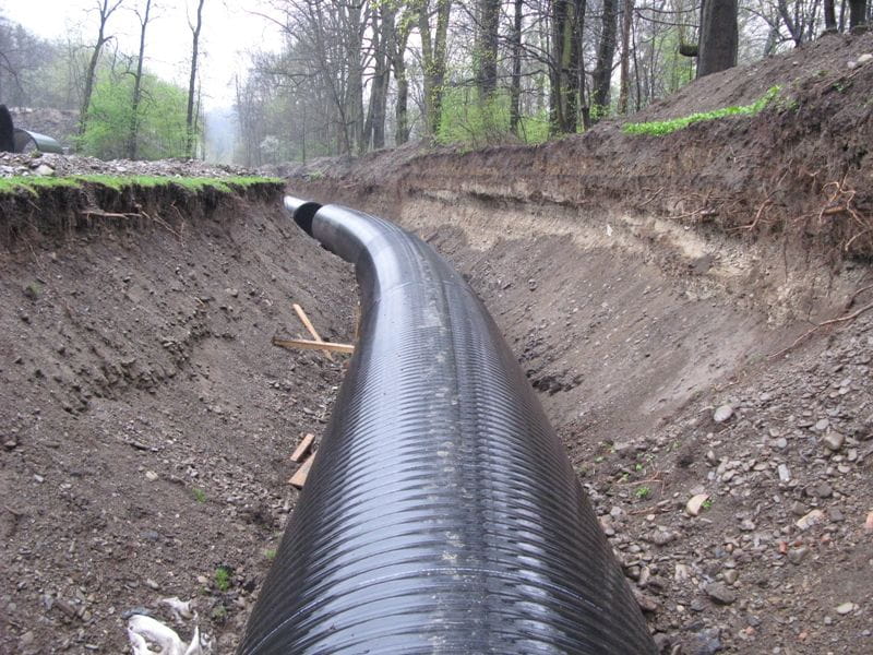 The investor carefully considered the choice of material for the pipeline. The technical design listed glassfibre reinforced plastic pipes as the material of choice, however MEW S.A.’s final decision was to use PE-HD Weholite DN 2200 mm piping. The decision was based on the high quality of Weholite technology, flexible terms of service offered by Uponor Infra’s as well as the company’s extensive global experience in hydroelectric projects. Durable, leak-proof and lightweight, Weholite pipes proved the ideal solution to the challenges  of the Cieszyn project. Their low weight as compared to pipes made from traditional materials such as steel, cast iron or concrete, made for easy transportation and installation in a challenging terrain of the city park. Among Weholite’s other qualities one should mention resistance to corrosion, chemicals and damage caused by differential soil settlement. These properties assure exceptional reliability and long-life of an underground pipeline, as well as near zero operating costs.