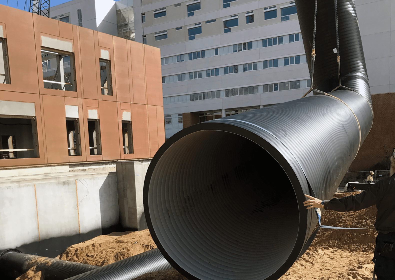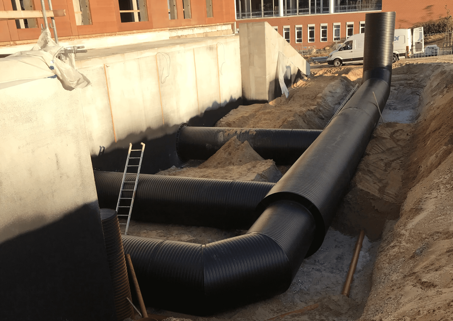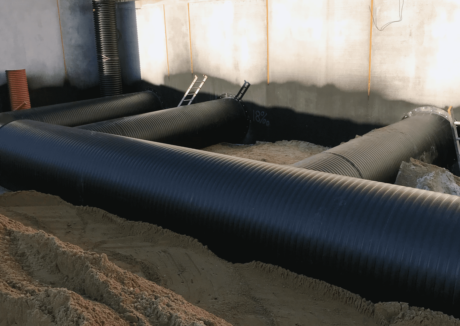 A building of this size and height calls for a correspondingly large exterior air intake, to meet the high demands on ventilation. The contract eventually went to infrastructure specialist Uponor Infra and its plastic Weholite pipes, as the pipes have an insulating effect and thereby counter condensation, which can lead to mould formation. Mould should be avoided in all buildings, but particular care must be taken in hospitals.