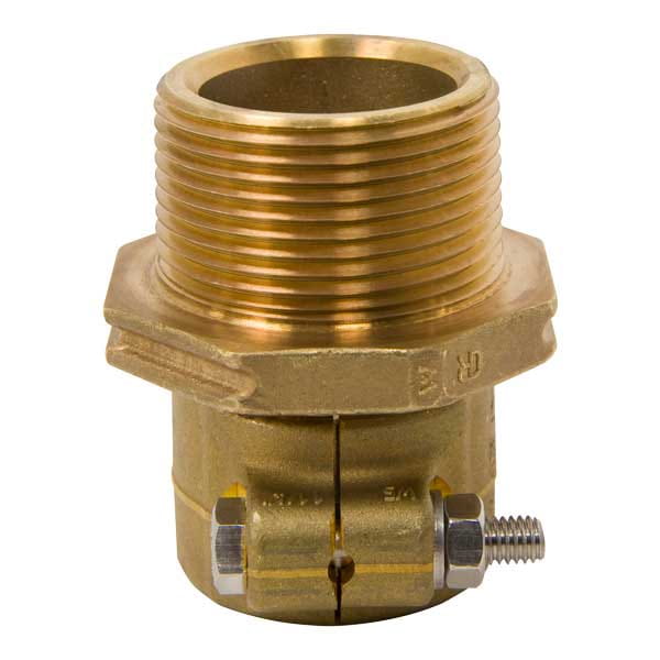 WIPEX dezincification-resistant (DZR) compression fittings transition PEX service pipe to a male NPT thread for a watertight, leak-resistant system.