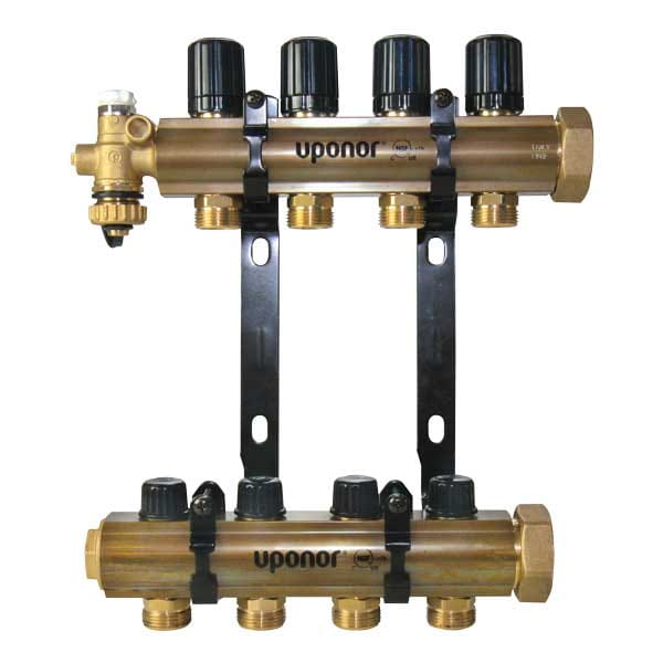 TruFLOW manifold assemblies with balancing and isolation valves come fully assembled and ready for installation. The assemblies are shipped with the appropriate number of TruFLOW manifold actuator adapters (A2630028). Maximum recommended flow to the manifold is 14 gpm for Jr. (1" barrel diameter) and 21 gpm for Classic (11⁄4" barrel diameter).