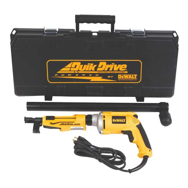Quik Trak installation tool kits offer labor-saving speed for Quik Trak installations. The kits feature a lightweight, easy-to-use screw gun with an extension arm to reduce fatigue. The kits include a 120VAC screw gun with vertical extension arm, square-head drive screw bits, bit-retrieval tool and hard-sided case.