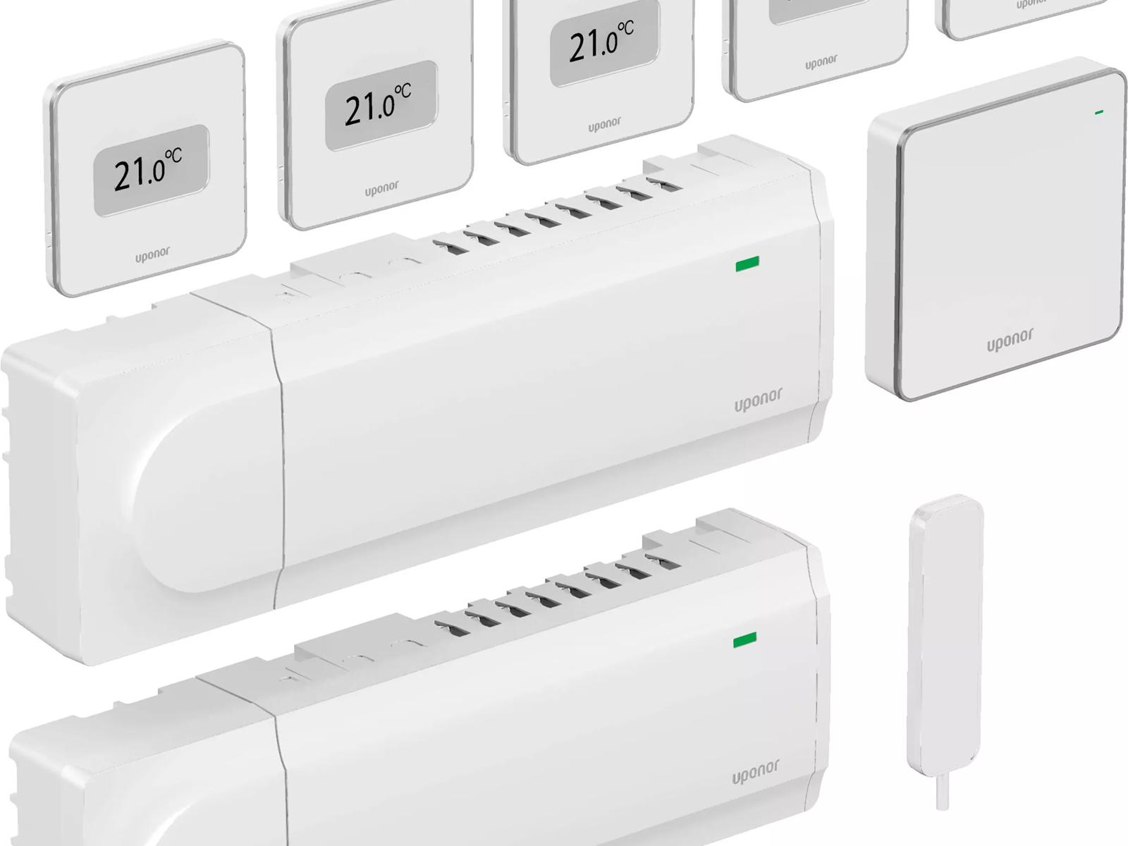 - ready-to-use carefree package with basic system setup for single family homes- extendable on demand - compatible to Uponor Smatrix Wave controller Pulse X-265 6X- protection class: Class II IP20- color: whiteConsisting of:- 1x Uponor Smatrix Pulse com R-208- 2x Uponor Smatrix Wave controller Pulse X-265 6X- 5x Uponor Smatrix Wave thermostat D+RH Style T-169- first step instructions, safety instructions- mounting material