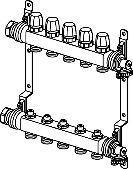 - For underfloor-heating and -cooling- Applicable with actuators 1141676 (230V) and 1141677 (24V)- Max. pressure: 6 bar at 60°C