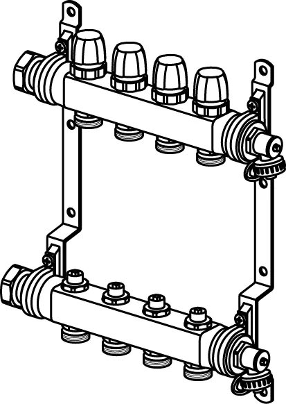 - Made of stainless steel- With integrated valves- Connection right or left with flat sealing- Integrated airvents and fill&drain points in supply and return,- Loop connection G3/4" eurocone- Loop pitch 50 mm- Header pitch 215 mm