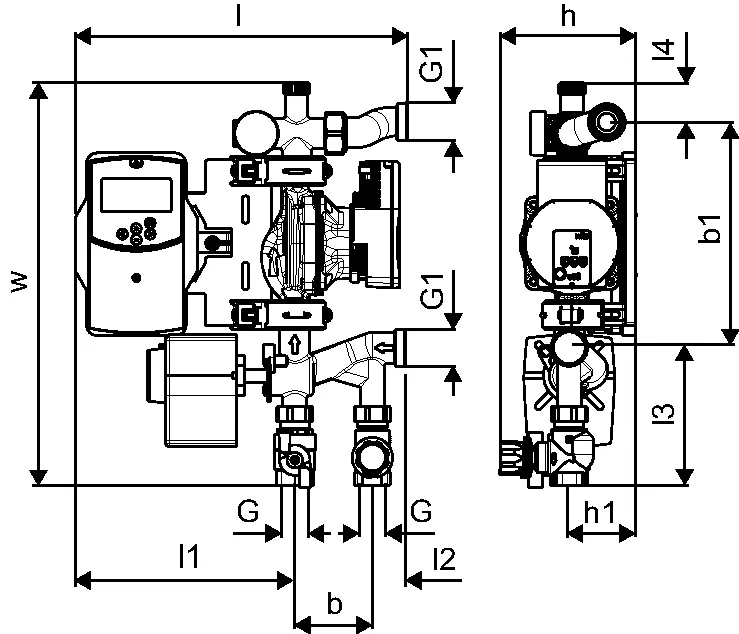 - Pumpgroup pre-mounted with supply temperature controller Uponor Smatrix Move- Outdoor temperature sensor (for installation on buildingsite)- Water temperature sensor for supply temperature- 3-way-mixing valve- Motor drive- Proportional pressure control- Upgrade to heating/cooling possible- For weather compensated supply water temperature control- Max. primary temperature: 90°C- Max. secondary temperature: 55°C- Ball valve + balancing valve primary- Secondary connection G1 (MT)- For installation left or right of manifold