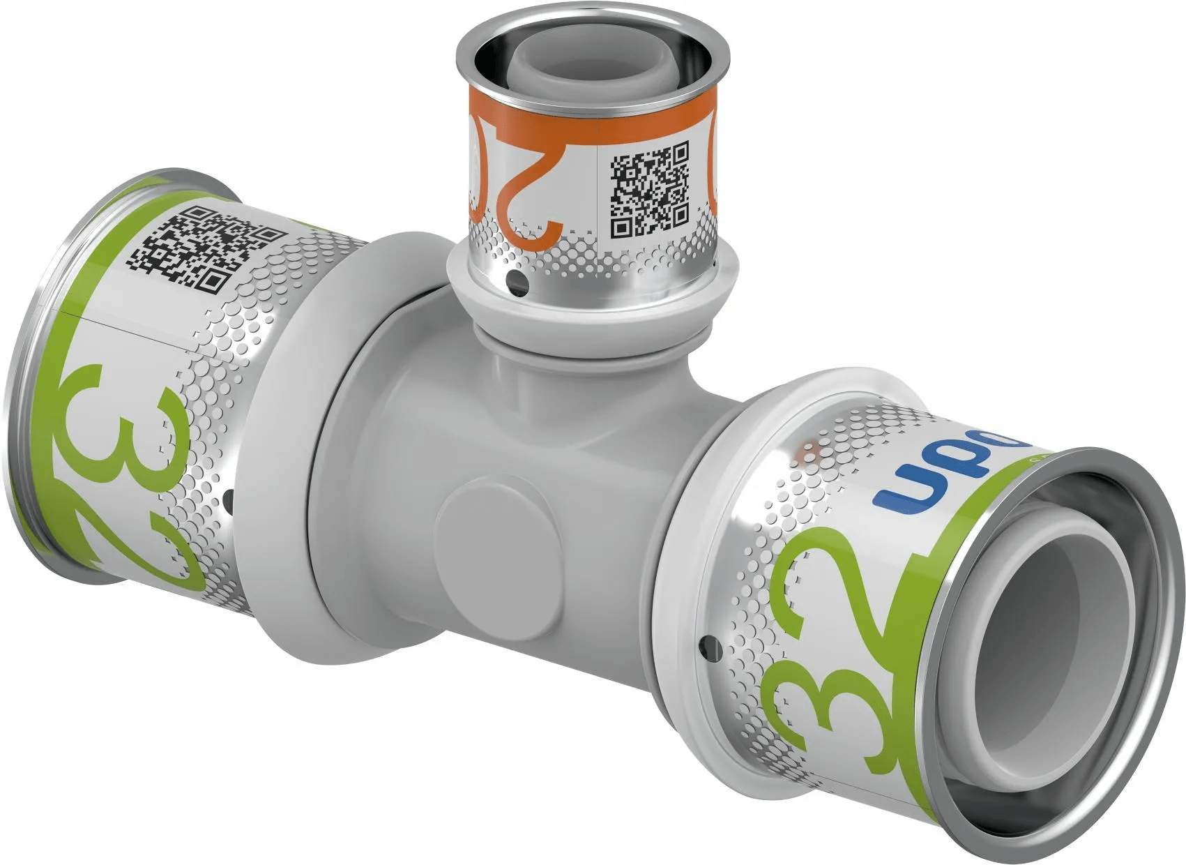 - Unique press indicator- Fast 3-step installation (press without bevel)- Innovative QR code for immediate digital access- Colour code- Fixed press sleeve with insprection window- Precise jaw fixation- Fast diameter recognition- Accurate test safety function- 100% backward compatible with existing Uponor components- Flow rate optimized fitting body