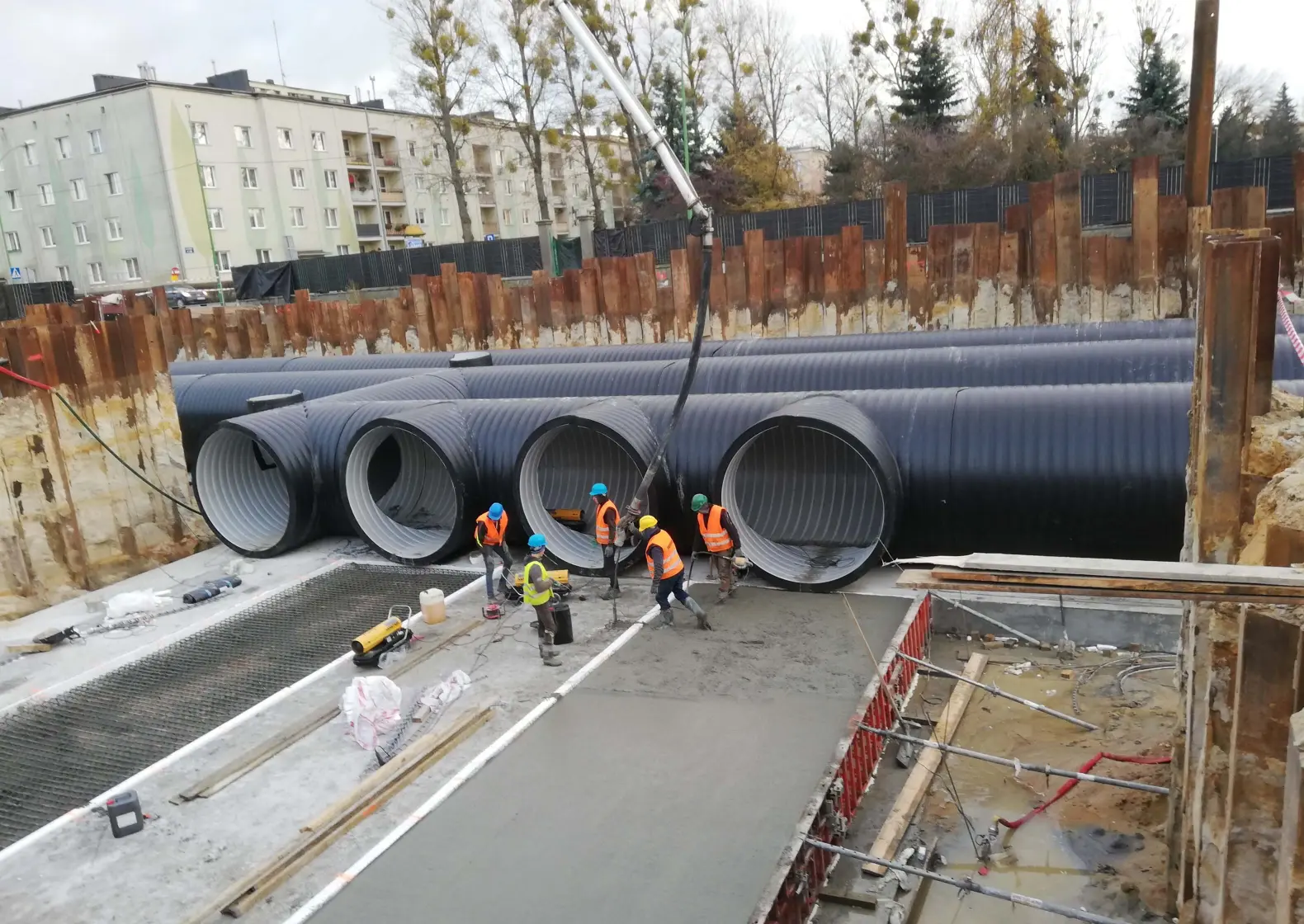 Work on the second stage of the project, located on the MOSiR grounds near the Polski Hotel, began in February 2020. The contractor for this stage of the project was Santex Sędziszów. Between March and July, Uponor Infra delivered 223.4 m of DN3000 SN8 angle tank elements together with DN3000 bends and tees to the site. Some of the welding was carried out by the contractor, who had been trained in this area by Uponor Infra. The work was completed in late 2020.