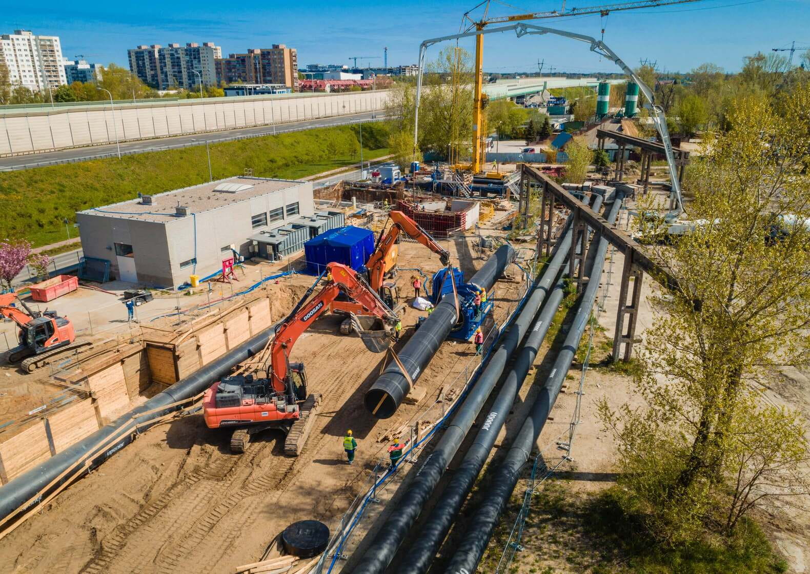 A backup sewage collector has been built in Warsaw to service 7 of the city’s 18 boroughs. The new pipeline runs under the Vistula river and is connected to pumping stations on the opposite banks by a record breaking DN1770 PEHD pressure pipeline delivered by Uponor Infra.