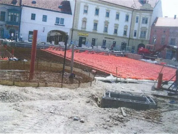 The City Mayor's Office announced a program for the large-scale rehabilitation of public premises, and renovation of the city, which included the reconstruction of the Fő square.Permit plans have been completed in the same year. With the design of the reconstruction, architects Mezei Építész Műhely and the Timpanon Mérnökiroda were commissioned, while construction was delegated to the Boroszlán Zrt., and the plans were completed in June 2009. Permit plan of the ice-rink was completed in 2008, the execution plan was completed in 2009. By the original plans, the surface of the trapezoid-shaped ice-rink was 1,400 m2. Because of the excavations of the sights, the fountain and the entry to the church, the surface of the ice-rink was reduced. Direction of the cooling pipes was modified to perpendicular compared to the original plans. The new plans were completed in February 2013. Installation of the cooling pipes of the ice-rink of the Fő square was completed in May 2013. The City Skating-rink of Pápa is in the middle of the Fő square, surrounded by old monuments. The skating-rink is suitable for speed-skating, ice-hockey, figure skating, ice-disco, ice-show, ice-carnival, ice-motorbiking, curling, pastime skating, etc., also for teaching ice sports, skating, or even for exercise classes. The ice surface is 950 m2, required cooling power is max. 240 kW. The cooling system can maintain the ice in excellent quality in rain-free conditions, in case of slight wind or calm, and diffused sunlight, up to +15 °C outdoor temperature. In rain, wind or sunshine the ice is still suitable for sports up to +20 °C. The season of the ice-rink is from end of October till the beginning of April, with the exception of some warm days.