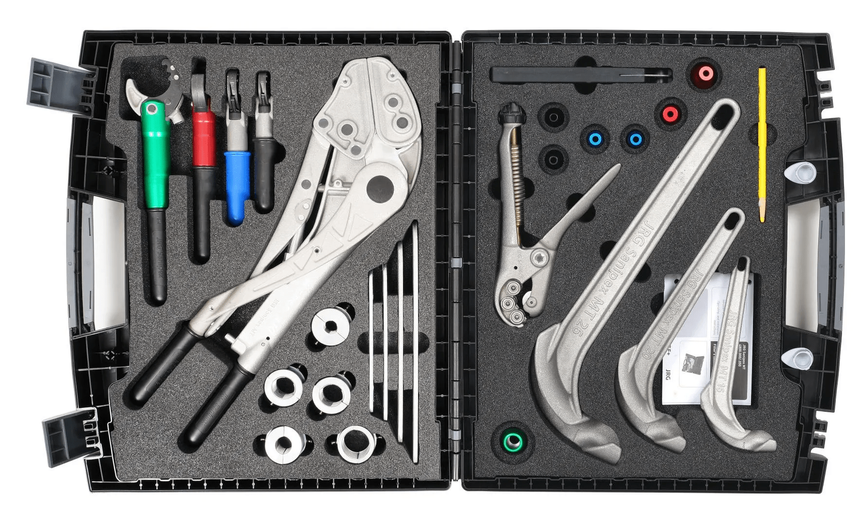 Material: plasticConsisting of: Expanding mandrel ML pipes: 4804.116 d16; 4804.120 d20, 4804.126 d26, 4804.132 d32 Expanding mandrel PEX pipes: 4804.216 d16, 4804.220 d20, 4804.225 d25 Clamping jaws ML / PEX pipes: 4805.016 d16, 4805.020 d20 Clamping jaws ML pipes: 4805.026 d26, 4805.032 d32 Clamping jaws PEX pipes: 4805.125 d25 /// 4805.000 Expanding pliers, 4806.016 Hand bending template d16, 4806.026 Hand bending template d20, 4806.026 Hand bending template d26, 4832.016 Ratchet torque wrench d16, 4832.020 Ratchet torque wrench d20, 4832.026 Ratchet torque wrench d26, 4832.032 Ratchet torque wrench d32, 4834.016 Counter key d16, 4834.020 Counter key d20, 4834.026 Counter key d26, 4834.032 Counter key d32, 4836.000 Pipe cutter d16-d40, 4837.000 Multi-purpose cutter d16+d20, 4838.000 Marking pen yellow