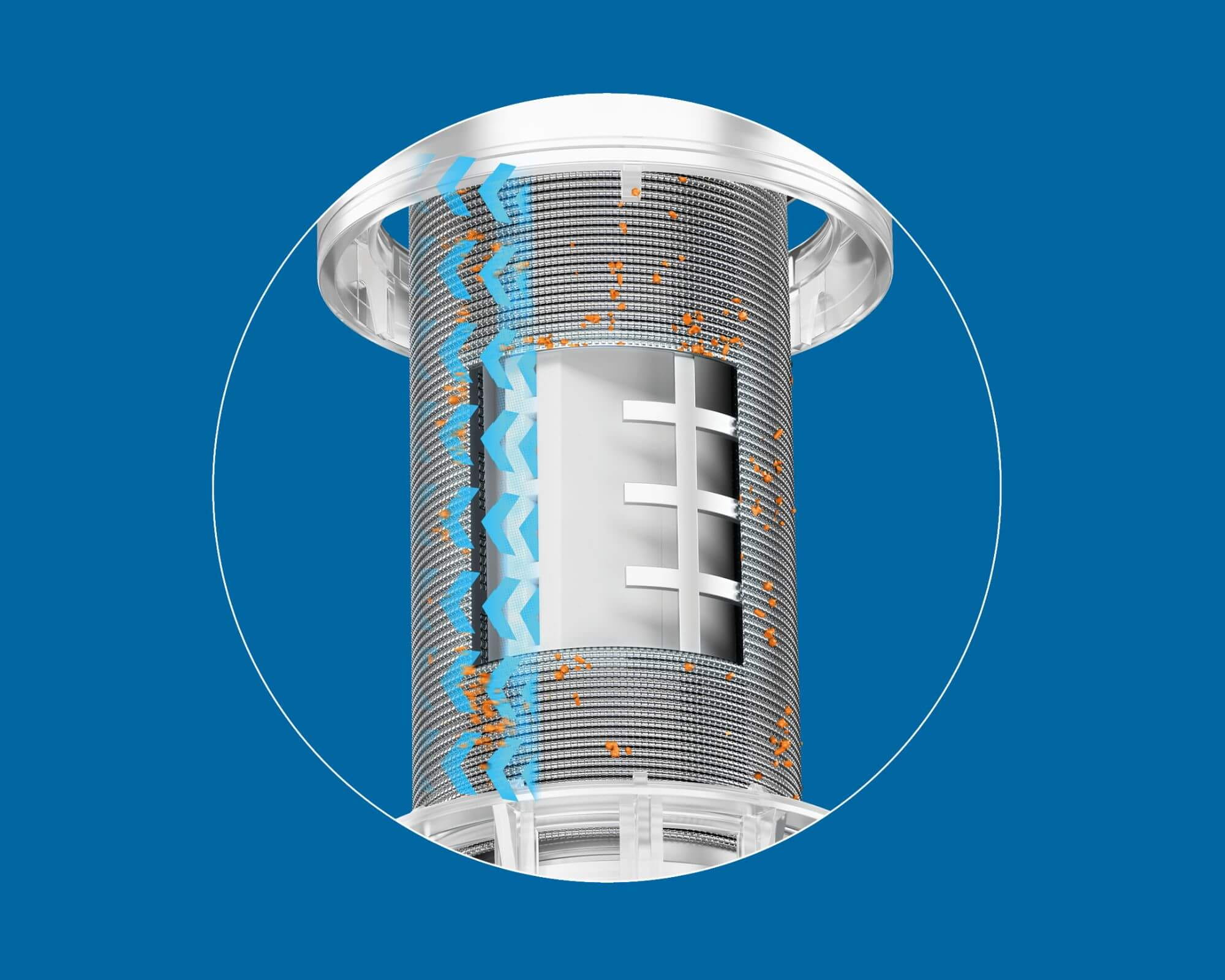 Particles filtered from the drinking water accumulate on the filter screen and must be regularly removed by backwashing to maintain optimal performance. Cleaning is recommended at least every two months.Backwashing removes the accumulated particles, and discharges them into the wastewater. With rotary-pulse technology, a short backwashing sequence of just three 3-second cycles suffices. The filter screen is cleaned from the inside by a rotating, high-pressure water jet, achieving high efficiency with minimal backwashing water.