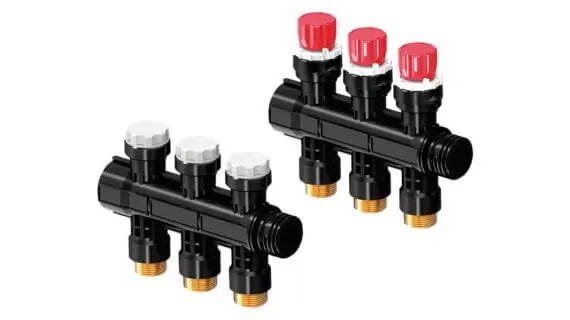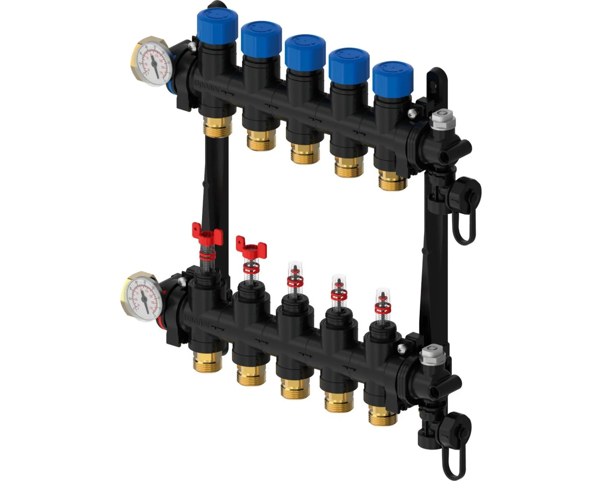 Uponor Vario manifolds are high quality manifolds made from different materials to cover all applications for radiant heating and cooling. Synchronised components connections allow easy connection to all Uponor pipe dimensions.