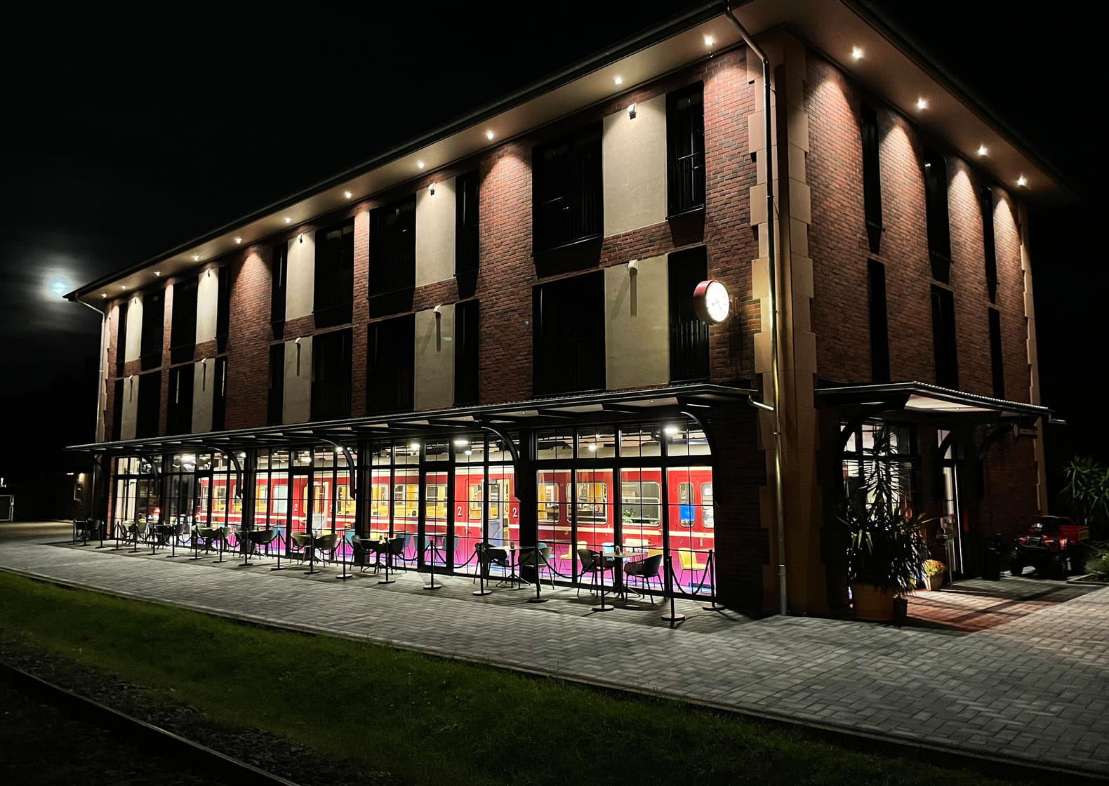 Spend the night and have breakfast in a train station? What sounds unusual is possible in Dahn-Reichenbach in the Palatinate. The new "Ferienbahnhof Reichenbach" design hotel has been welcoming guests here since 2023. The name says it all: the hotel is a stylish replica of a railroad station building. In the foyer, a real train stands on an illuminated track bed, making the hearts of many railroad fans beat faster. It is a so-called Esslinger - a model that was manufactured by Maschinenfabrik Esslinger in the 1950s and now has classic car status. Guests can enjoy their breakfast in this train.