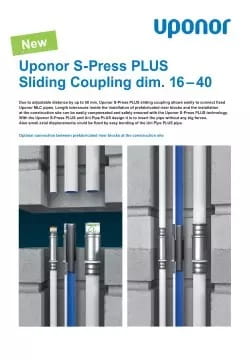 Uponor S-Press PLUS sliding coupling 16 - 40 mmApplication areas: