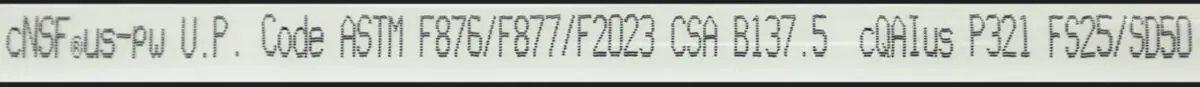 Following the SDR is the UB number, which provides information about the pipe’s manufacturing process. The next section states “POTABLE”, which means the pipe is intended for water approved for human consumption and use (drinking, washing, etc.). After that section comes the applicable codes, standards, and listings.