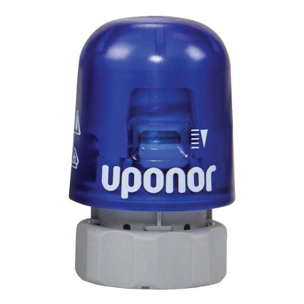 Two-wire, slow-opening thermal actuators mount directly onto stainless-steel heating manifolds to provide individual-loop flow control on a multi-zoned manifold (a manifold serving more than one zone). Note: See actuator-to-manifold compatibility table on page 96.