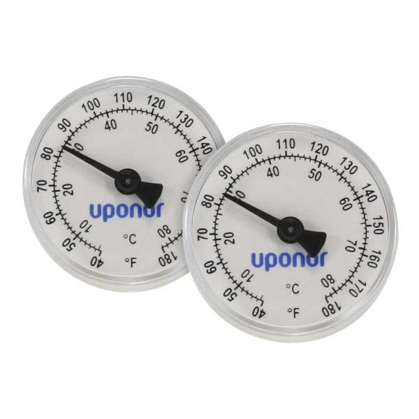 EP heating manifold temperature gauges display the supply and return temperature on the manifold. They snap into the connection piece (A2670032) on the manifold.