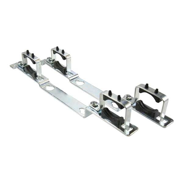 Stainless-steel manifold mounting brackets are used to mount Uponor Stainless-steel manifolds. Brackets are made of durable metal and are offset front-to-back and side-to-side for ease of installation. Two brackets are required for each manifold location.