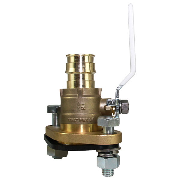 Use ProPEX LF brass transition ball valves to connect PEX expansion to equipment via flange in domestic water piping systems as well as mechanical HVAC applications in systems containing no more than 50% propylene glycol. These full-port ball valves with stainless-steel stems provide reliable, high-flow performance and allow contractors to speed installations in tight spaces for greater jobsite productivity while offering engineers optimal hybrid design opportunities to meet pressure, temperature, and space requirements. Stem extension kits are available for insulated piping applications to accommodate up to 2" of insulation.
