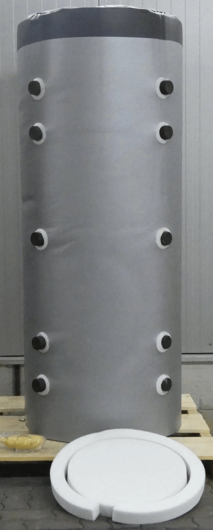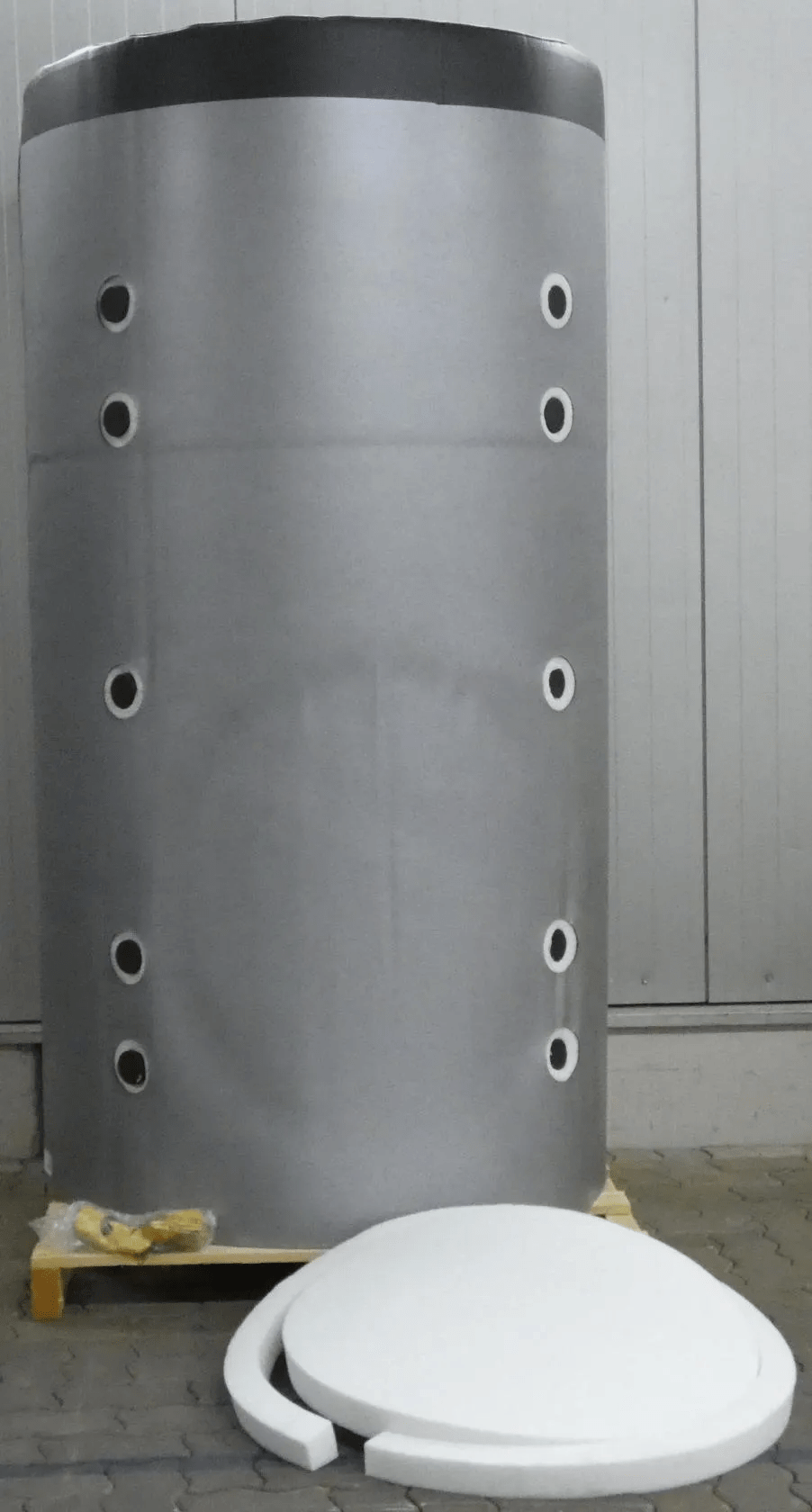 - Sistema de depósito de inercia SPS de diseño cilíndrico vertical con extremos abombados y un anillo de base. - Con 10 conexiones: ideal para la integración opcional de energías renovables.- Fabricación según el estándar de fábrica, construido según la norma DIN 4753 (parte 3) y las normas calculadas para recipientes a presión, para sistemas de calefacción según la norma DIN 4751. Acero de calidad ST 37-2 según la norma DIN 17100, con soldadura eléctrica, sin tratamiento en el interior e imprimado con una capa antioxidante en el exterior.- El depósito de inercia dispone de 10 conexiones DN50 con rosca macho, 5 conexiones a cada lado desplazadas 90°, además de 3 tomas de 1/2" para ventilación, drenaje o uso específico (termómetro).- Incluye tubo del núcleo del sensor de acero inoxidable con un posicionamiento óptimo para maximizar la eficacia del sensor de apertura y cierre. - El aislamiento térmico es de espuma de PU flexible de 100 mm. En el tubo del núcleo del sensor pueden alojarse hasta 4 sensores para el control de carga de inercia. - Posibilidad de extensión de la conexión a la brida DN 65 mediante un adaptador de brida en cualquier momento.Datos técnicos:- Material: ST 37-2- Presión de servicio: 3 bares- Temperatura máxima de servicio: 95 °C- Profundidad de aislamiento (500-1500 l): 100 mm- Conexiones: 10 conexiones DN50 con rosca macho- Volumen: 500-2000 l tipoLos depósitos de inercia solo se utilizan para calefacción, no para refrigeración. No son resistentes a la difusión.
