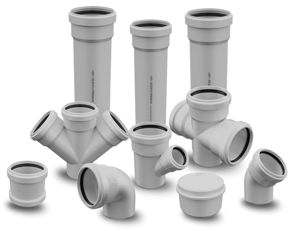 La planta de Cerkezkoy en Turquía, también conocida como Georg Fischer Hakan Plastik, alberga la producción de sistemas de aguas residuales con soluciones de calidad como la gama GF Silenta Premium (en la imagen), GF Silenta 3A o GF HT-PP.
