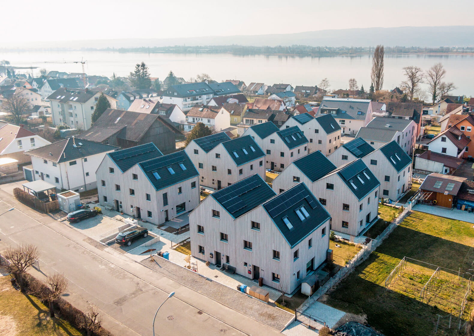 "I am proud of this project, which enabled me to realise a property development deal worth tens of millions of euros and initially cost me many sleepless nights," explains Managing Director Peter Kaufmann. The realisation of the residential complex in Allensbach brings him a big step closer to his vision: he wants to change the world for the better with his construction projects. As a general contractor, property developer, planner and timber construction company, his focus is on resource-saving concepts for the development of new residential neighbourhoods. His aim is to create sustainable, ecological and energy-efficient buildings that generate more energy over the year than they consume for heating or domestic hot water.