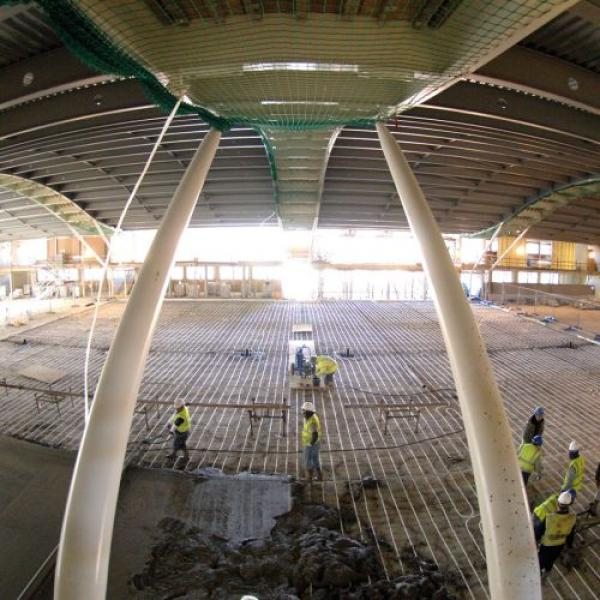 The environmental ambience created by Uponor's underfloor heating is very similar to that needed for perfect human conditions. Tests have shown that perfect heating comfort comes from providing a warm feet, cool head situation. Whereas conventional heating methods circulate heat around a room and often over the head of the recipients. This makes methods of heating such as radiators extremely inefficient in large spaces. In addition, by having all of the heating in the floor, the useable space of the facility is increased. The PEX material is extremely long lasting and offers a 50 year minimum service life.