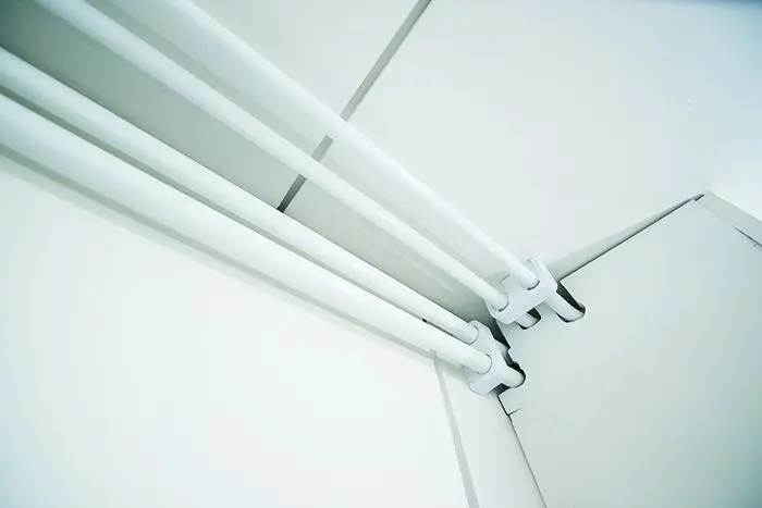 The outcome of the HVAC contractor's work was neat, the Mattsons say. The pipes and parts were already coloured white, so they didn't have to be painted separately. In the Mattson home, the pipes were left partially visible, but they can also be hidden behind shells. In the living room, the pipes were inconspicuously installed behind the curtain rods.