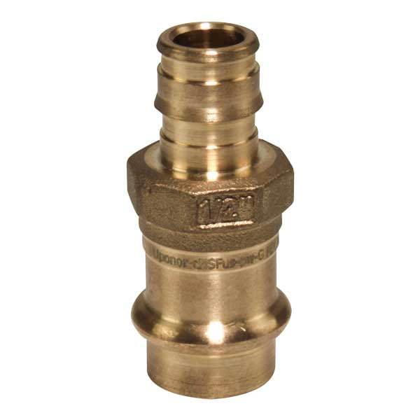 Los adaptadores de presión de cobre y bronce LF ProPEX realizan la transición de las tuberías Uponor PEX a las tuberías de cobre.Nota: Se necesitan la herramienta ProPEX y la herramienta de presión de cobre. Los anillos ProPEX se venden por separado.