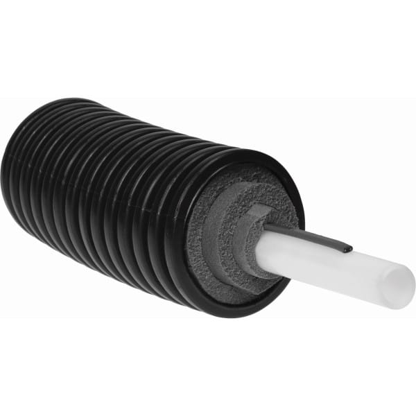 Las tuberías de agua potable Ecoflex PEX Plus tienen aislamiento preinstalado y vienen con un cable calefactor que se aplica a la tubería. Este producto tiene un cable calefactor con mecanismo de autorregulación y una potencia máxima de 5 W/ft para evitar que el agua se congele. Las tuberías de servicio AquaPEX de Uponor en las tuberías de agua potable Ecoflex Plus se fabrican con el proceso del método Engel (PEX-a) y se certifican según las normas ASTM F876 y F877. Las tuberías están revestidas de varias capas de aislamiento de espuma PEX de celda cerrada con una cubierta de polietileno de alta densidad (HDPE) corrugado e impermeable, lo que las hace ideales para aplicaciones en las que deben enterrarse directamente. Nota: Utilice los accesorios ProPEX. Códigos: UPC, IPC, NSPC, NPC de Canadá, Código Nacional Eléctrico, Código Eléctrico de Canadá, parte I. Normas de fabricación: ASTM F876, ASTM F877, CSA B137.5, ASTM 1960, norma 41 de NSF/ANSI, norma 61 de NSF/ANSI. Listados de productos: cNSFus-pw, PEX 5106, CSA C22.2 n.º 130-03 (R2012), ANSI/IEEE 515-2011