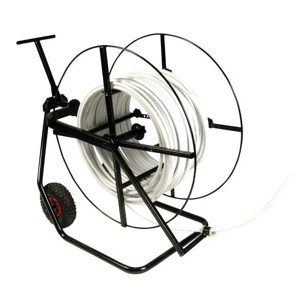 Los desenrolladores Select facilitan el desenrollado de tuberías Uponor PEX de 5/16" a 1". La sólida construcción presenta un carrete ajustable para permitir el desenrollado en posición horizontal o vertical. Las ruedas resistentes facilitan el transporte y el desenrollador está equipado con un ojal para alimentación de tuberías. El tamaño máximo de bobina para tuberías de 5/16", 3/8", 1/2", 5/8" y 3/4" es de 1000 ft., mientras que el tamaño máximo para las tuberías de 1" es de 500 ft.